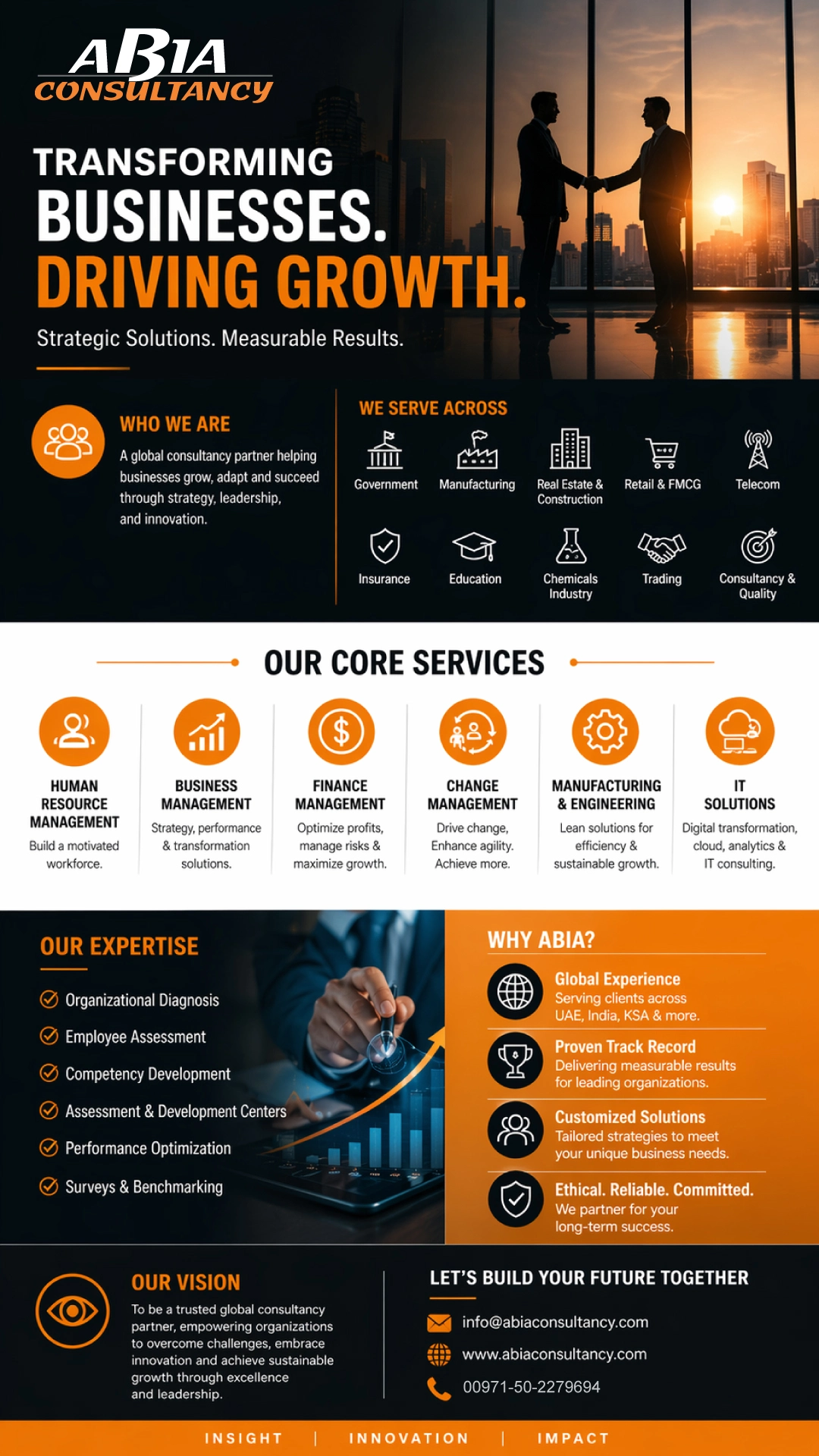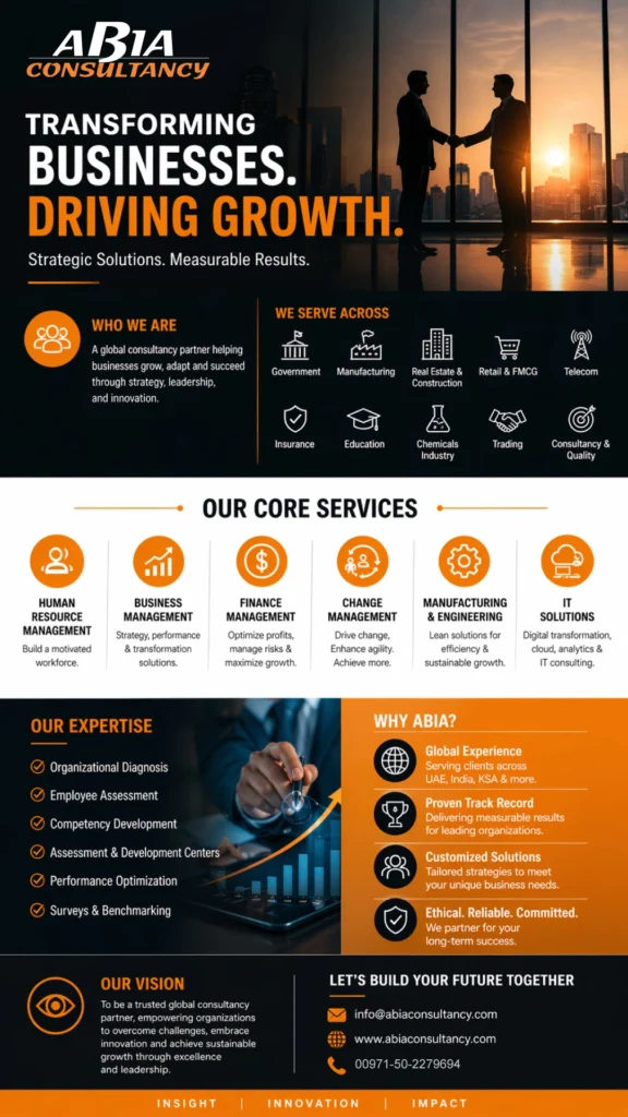 ABIA believes in walking alongside its clients at every stage of their business journey. Our consulting approach focuses on helping organizations identify new opportunities, address challenges, and implement solutions that deliver lasting value.